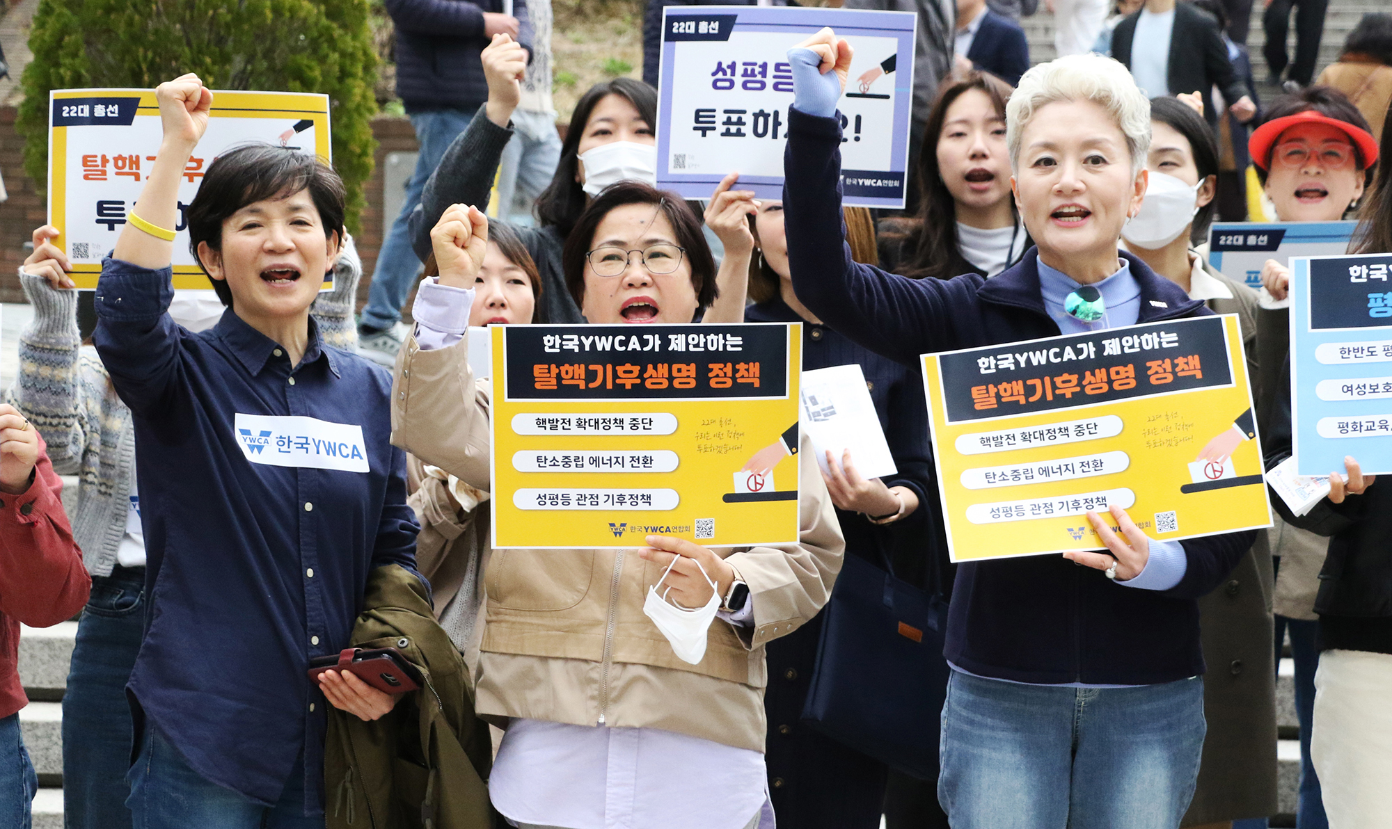 “탈핵기후생명, 성평등, 평화·통일에 투표해 주세요!” 한국YWCA연합회는 4월 4일(목) 명동성당 앞과 을지로, 명동 거리에서 시민들을 대상으로 22대 총선 유권자 캠페인을 진행했습니다. 이번 캠페인은 시민들의 4.10 투표 참여를 독려하고, 한국YWCA 정책 의제를 알리기 위해 마련됐습니다. 🚶♀🪧