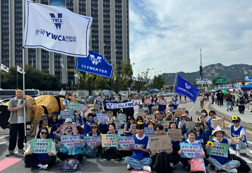 9월 27일, 서울 광화문과 전국 6개 지역에서 기후정의행진이 열려 약 3만 3천여 명이 참여했습니다. 한국YWCA연합회와 10개 회원YWCA도 광화문과 각 지역에서 손피켓과 깃발을 들고 함께했습니다. 참가자들은 “모두의 존엄과 안전”을 외치며 기후위기와 불평등, 민주주의의 연결을 강조했습니다. 이번 행진은 기후정의 실현이 더 강한 민주주의로 가는 길임을 알리는 자리였습니다.