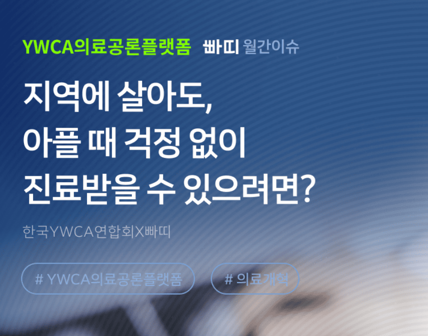 2025년 9월 24일(수) 제3차 YWCA 의료공론플랫폼 시민대화가 온라인에서 ‘지역 의료’를 주제로 열렸습니다. 참가자들은 “지역에 살아도 걱정 없이 진료받으려면?”이라는 질문을 중심으로 경험을 나누고 개선 방향을 모색했습니다.